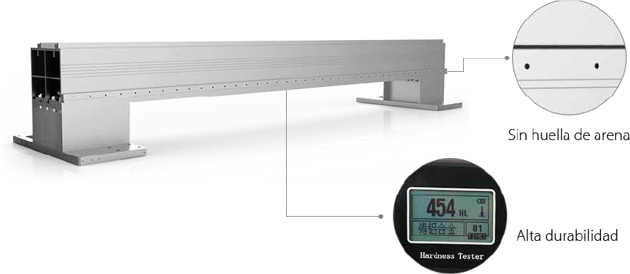 2.- El pórtico de acero pesa 280 kg, el de aluminio fundido 180 kg, y el de aluminio aeronáutico solo 138 kg, lo que mejora la velocidad de corte y reduce la carga de los rieles. Somos los primeros en adoptarlo.